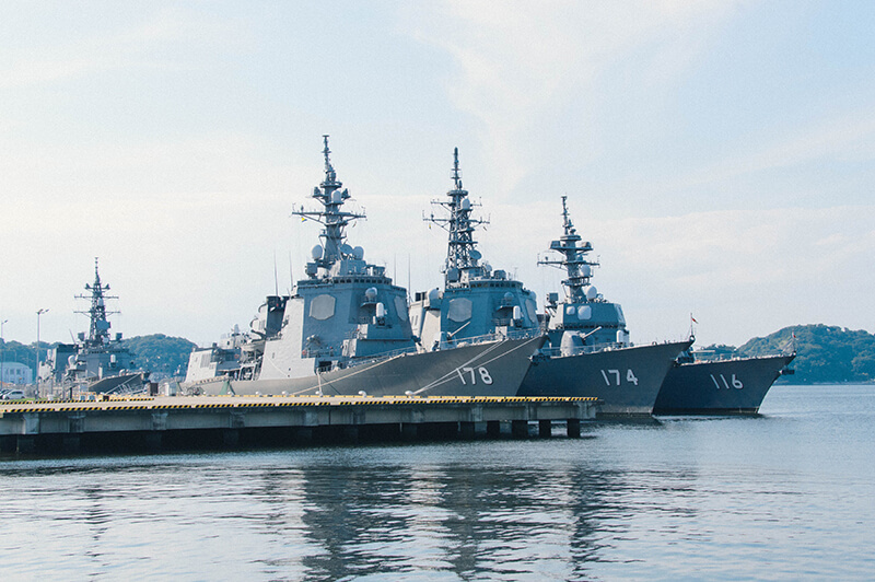 ヴェルニー公園から見える艦これ的なあれ。詳しくないのでわからなかったけど、178あしがら、174きりしま、116てるづきだと教えてもらいました。